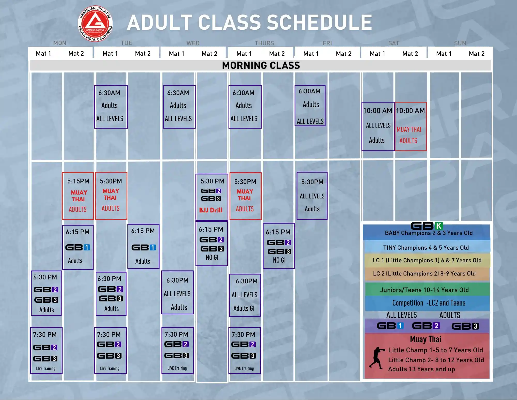 We understand life can get busy, but with our flexible schedule, you can easily find a time that fits into your daily routine and your family’s as well. Whether you’re looking to embark on your own Jiu-Jitsu journey or introduce your child to the art, we offer a variety of class times that perfectly accommodate any schedule. Take the opportunity to schedule a class at Gracie Barra, the ideal place to grow, learn, and develop in a safe and welcoming environment.